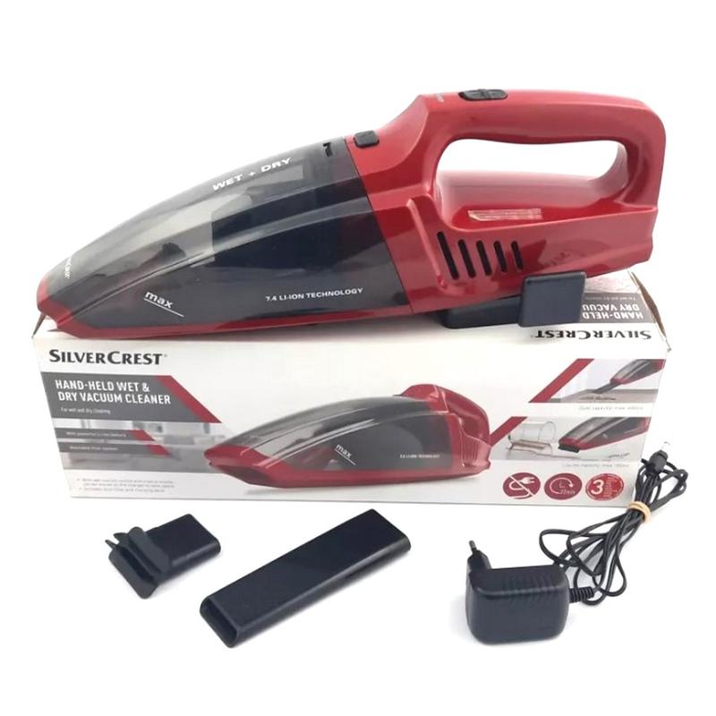 Ручний бездротовий мініпилосос SilverCrest (Німеччина), Потужний ручний пилосос із контейнером, NST Ручний акумуляторний пилосос SilverCrest має малу вагу 0,7 кілограма, компактний і зручний у застосуванні. Добре підходить для чищення салону автомобіля, де він показав себе з найкращого боку. За допомогою двох насадок можливе встановлення та прибирання важкодоступних місць між сидіннями. Пилос складається з двох роз'єднуваних частин. Перша частина — це прозора колба, що має всередині фільтр. Фільтр треба зберігати в чистоті, іноді чистити. Від цього пилосос працює краще та економиться батарея. Батарея живлення 7,4V Li — ION 2200mAH. Час заряджання акумулятора — 5 годин. Особливості: - З потужним літій-іонним акумулятором; - Для вологого та сухого прибирання; - З зарядною станцією, з'єднаною насадкою та насадкою для вологого прибирання; - Комп'ютер можна прикріпити на стіні — до комплекту входить монтажний матеріал; - Велика місткість бака для пилу — 400 мл; - Вбудований літій-іоновий акумулятор високої продуктивності; - 20 хвилин безперервної потужності всмоктування. Характеристики: - Виробник: Silver Crest; - Країна-виробник: Німеччина; - Споживана потужність: 7.4 Вт; - Об'єм пилозбірника: 0.4 л; - Положення регулятора потужності всмоктування: ручка; - Живлення: Акумулятор; - Тип прибирання: Сухий; - Об'єм аквафільтра: 0.15 л; - Матеріал корпусу: Пластик; - Тип акумулятора: Li-Ion; - Час роботи від акумулятора: 20 хв; - Час заряджання акумулятора: 5 годин; - Тип: Ручний (автомобільний); - Потужність: 7,4 В, 2200 мА·год; - Рівень шуму: 68 дБ; - Габаритні розміри: 120х415х105 мм; - Вага: 1 кг. Комплектація - Акумуляторний ручний пилосос; - Інструкція; - Паковання.