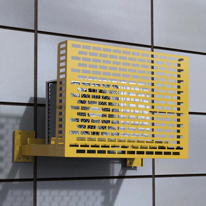 Вузька прямокутна перфорація Розмір кошика: 655*900*550 (В*Ш*Г) Товщина металу кошика: 1 мм. Товщина металу кронштейнів: 2 мм. Кондиціонери типу: 7,9,12. Кошики та екрани для кондиціонерів Кошики для кондиціонерів є збірно- розбірними, що дозволяє здійснювати обслуговування зовнішнього блоку і підведення комунікацій. Передня та бічні панелі є знімними, що полегшує монтаж . Декоративні екрани та кошики маскують зовнішній блок, забезпечуючи оптимальне надходження повітря до кондиціонера, не дозволяючи йому перегрітися. Універсальний блок кріплення для можливості встановлення кошиків та екранів як на утеплений так і не утеплений фасади. Унікальний дизайн – можливість вибору кольору по RAL та виду виконання. Кронштейни витримують навантаження до 170 кг.