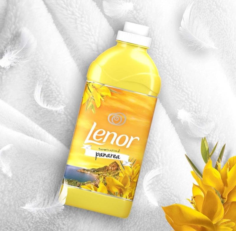 Кондиціонер Lenor Panarea 37 прань натхненний літнім заходом сонця Panarea Lenor Panarea натхненний літнім заходом сонця Панареї, есенціями цього прихованого перлину, який поєднує в собі дикі цвіти та бурштин для м'якості 950мл Італія