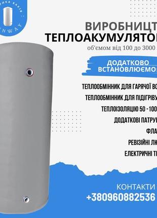 Виробник: Sunway Тип: Теплонакопичувачі Є в наявності практично всі баки від 100 до 2000 л Оформити покупки ви можете на нашому офіційному сайті- Фабрика баків Sunway, Sunway.***** також в особисті повідомлення або за телефоном Буферна ємність або акумулюючий бак для котлів, опалення, сонячних колекторів від 100 до 5000 літрів Варіанти виробництва бака: Без теплообмінників, з верхнім теплообмінником ГВС, нижнім теплообмінного, двома теплообмінниками, в утепленні або без. Робочий тиск - до 6 Атм Товщина металу - 3 мм Кришка і донці вироблені з півсфер. Розміри баків виробляємо індивідуально. Безкоштовна консультація та підбір баків під Ваш котел. Доставка по всій Україні службою Делівері та нова пошта Фабрика баків Sunway Гарантія 3 роки