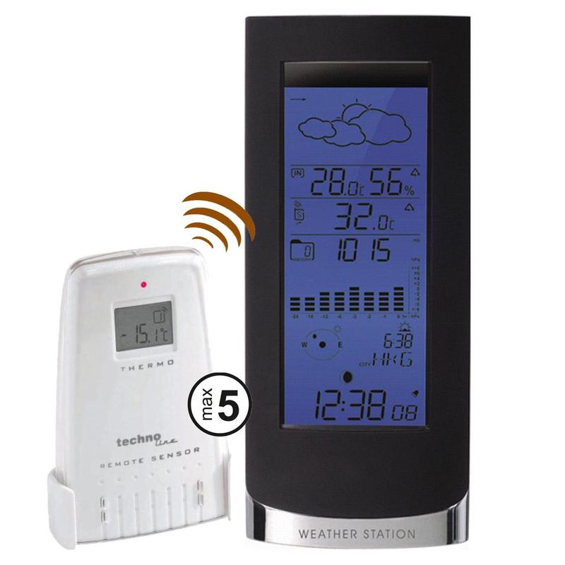 Technoline WS6501 поєднує ряд зручних і корисних функцій, які ви не знайдете в жодній іншій домашній погодній станції. Це не просто велика презентабельна метеостанція з яскравим різнокольоровим підсвічуванням дисплея, що повідомляє температуру і вологість. Колір підсвічування дисплея змінюється відповідно до прогнозу погоди, таким чином немає необхідності навіть підходити до станції, щоб бути в курсі значних погодних змін. А якщо постійне підсвічування заважає, ви можете налаштувати автоматичний режим увімкнення підсвічування за допомогою одного помаху руки перед сенсором на дисплеї, або і взагалі деактивувати підсвічування. Так само безконтактно за допомогою сенсора вмикається режим повтору будильника "Snooze". Сенсорне керування допоможе зберегти метеостанцію в чистоті та мінімізує контакт ваших рук із технікою. Окрім того ця станція одна з небагатьох, що дозволяє встановити висоту положення над рівнем моря, а отже отримувати точні дані тиску саме на тій висоті, де ви знаходитесь, передивлятись графік зміни тиску та пікові значення тиску протягом останніх 24 годин. На дисплеї можна відобразити не лише поточну інформацію про фазу місяця, час сходу/заходу сонця, але й на будь-яку дати в періоді з 2000 по 2099 рік. Основний блок може приймати інформацію про зовнішню температуру від 5 датчиків одночасно (в комплекті поставляється 1 датчик). А сам датчик має спеціальний прозорий захист від складних погодних умов, рівно як і батарейний відсік станції надійно герметизований і захищений від проникнення вологи. Метеостанція Technoline WS6501 може працювати від блока живлення та від батарей, що дозволяє використовувати її в будь-якому місці вдома, або взяти на дачу. Вона буде корисна не лише в квартирі, але і для садівництва та городництва, де стеження за фазами місяця може бути важливим, і для контролю мікроклімату у виробничих приміщеннях. Завдяки цій метеостанції ви заздалегідь будете в курсі та зможете підготуватися до будь-яких погодних умов. Функції: Годинник: - Механізм: електронний, цифровой - Функція радіоконтролю часу DCF77: автоматична синхронізація часу по радіосигналу DCF77 з Майнфлінгена (Німеччина). Сигнал формується на основі даних, отриманих від трьох атомних годинників, і похибка становить менше 1 секунди в 1 мільйон років. Передавач сигналу точного часу DCF77 здійснює передачу даних у радіусі 1900-2100 км та охоплює більшу частину території України. Зверніть увагу, що якісний прийом сигналу здійснюється в радіусі 1500 км, Україна знаходиться на межі радіусу дії сигналу, і якість прийому сигналу в різних регіонах країни може відрізнятися і залишатися нестабільною. В окремих районах Дніпропетровської, Запорізької, Харківської, Донецької та Луганської області сигнал може бути відсутнім. У такому випадку необхідно вимкнути прийом радіосигналу та скористатися ручними налаштуваннями. - Можливість відключення сигналу радіоконтролю та вибір ручного встановлення часу та дати - Формат часу: 12/24 г - Оскільки дана модель не підтримує зміну часового поясу, прийом сигналу радіоконтролю часу бажано вимкнути. - Точність ходу часов: 1 с в 1 млн років (При прийомі сигналу DCF77), +/- 30 сек/міс (точність електронного механізму) - Будильник с функцією повтору «snooze», що вмикається безконтактно за допомогою сенсора з відстані 5-7 см Прогноз погоди: - Прогноз погоди на 12-24 