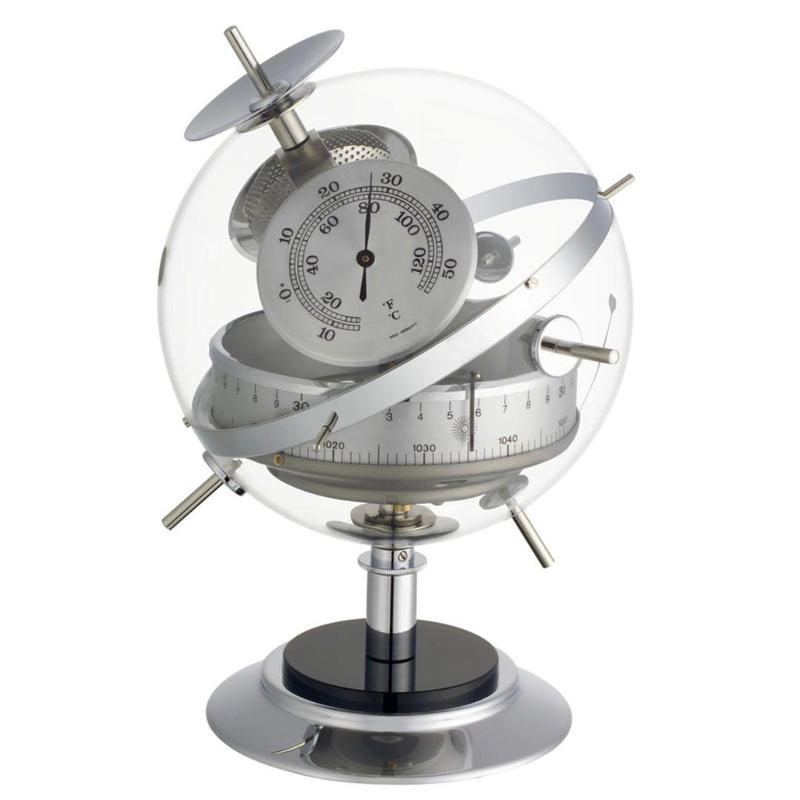 "SPUTNIK" - настоящая классика! Как глобус, необыкновенный пространственный объект можно вращать и поворачивать, и он дает представление о механизмах термометра, барометра и гигрометра. Термометры и гигрометры работают с биметаллической пружиной, которая меняет свой размер при различной температуре или влажности. Барометр-анероид реагирует чувствительно на изменения давления воздуха и отображает даже небольшие колебания. Текущее давление воздуха помечено установочной стрелкой. Наблюдение за изменениями атмосферного давления во времени позволяет точно прогнозировать погоду. Спутник изготовлен в Германии, корпус изготовлен из акрилового стекла (оргстекло), а держатель из металла. ФУНКЦИИ: - Сделано в Германии - Классическая настольная метеостанция с открытым барометром - С держателем, из латуни или хрома - Поворотный корпус из акрилового стекла (оргстекло) с открытым механизмом - С барометром, термометром и гигрометром - Точный барометр для прогнозирования погоды - Для внутреннего использования (барометр, термометр, гигрометр) ЗНАК КАЧЕСТВА TFA: - Основным элементом TFA является собственное производство механических погодных инструментов. Мы создаем продукцию, соответствующую этикетке «Сделано в Германии», с использованием самых современных технологий производства и традиционного ремесленного производства. QUALITY-PRODUCT by TFA Dostmann GmbH & Co.KG Germany