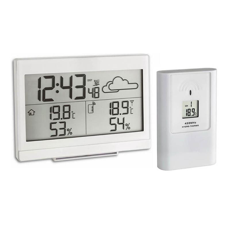 Метеостанція TFA (351135) Casa — це настільна бездротова погодна станція. Метеостанція TFA Casa (351135) складається з основної консолі та дистанційного датчика. Основна консоль виготовлена в тонкому корпусі з великим дисплеєм. Дисплей легко читається, має короткочасну підсвітку жовтого світла. ⠀ На дисплеї зображаються: поточний час, символ прогнозу погоди, значення вимірюваної температури всередині та зовні приміщення, значення вимірюваної вологості повітря всередині та зовні приміщення. ⠀ Температуру та вологість на вулиці вимірює зовнішній бездротовий датчик термогігрометр. До комплекту входить 1 зовнішній датчик, але додатково можна придбати та під'єднати до трьох зовнішніх датчиків одночасно, що дає змогу охопити досить широку площу для вимірювання даних (теплиця, дитяча кімната, складське приміщення...). ⠀ Колір корпусу основної консолі: Чорний — TFA (35113501) Casa, Білий — TFA (35113502) Casa. ⠀ Характеристики метеостанції TFA (351135) Casa: підсвічування дисплея (LED-підсвітка, колір світіння — жовтий), годинник/будильник, прогноз погоди, температура повітря в приміщенні, температура повітря зовні приміщення, вологість повітря в приміщенні, вологість повітря зовні приміщення, індикатор розряду батарей, передавання даних від зовнішнього датчика (до 50 м. прямої видимості), дистанційний датчик TFA (30321102) — на передній панелі є маленький дисплей, на якому зображаються вимірювані значення температури і вологості. Встановивши датчик в іншій кімнаті, можна контролювати мікроклімат у тій кімнаті із самого датчика. ⠀ Комплектація метеостанції TFA (351135) Casa: 1. Консоль TFA (35113501) Casa или TFA (35113502) Casa. 2. Датчик температури та вологості TFA (30321102). 3. Інструкція. 4. Гарантійний талон. ⠀ Метеостанція TFA (351135) Casa — це чудовий прилад для подарунка рідним або близьким.