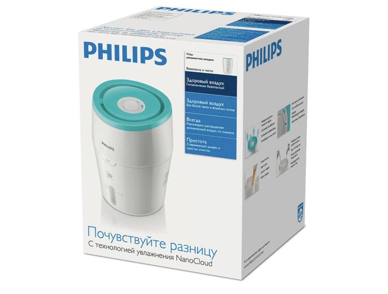 Зволожувач повітря Philips Series 2000 HU4801/01 з технологією NanoCloud оснащений сучасною системою холодного випару і діє в декілька етапів. Заздалегідь сухе повітря поступає в зволожувач, а частки пили і шерсть осідає на фільтрі. Далі в повітря випаровуються молекули води. Технологія NanoCloud перешкоджає поширенню в повітрі бактерій і появі білого пилу. На останньому етапі здійснюється зволоження повітря без утворення водяної пари, що забезпечує комфорт для усієї сім'ї.