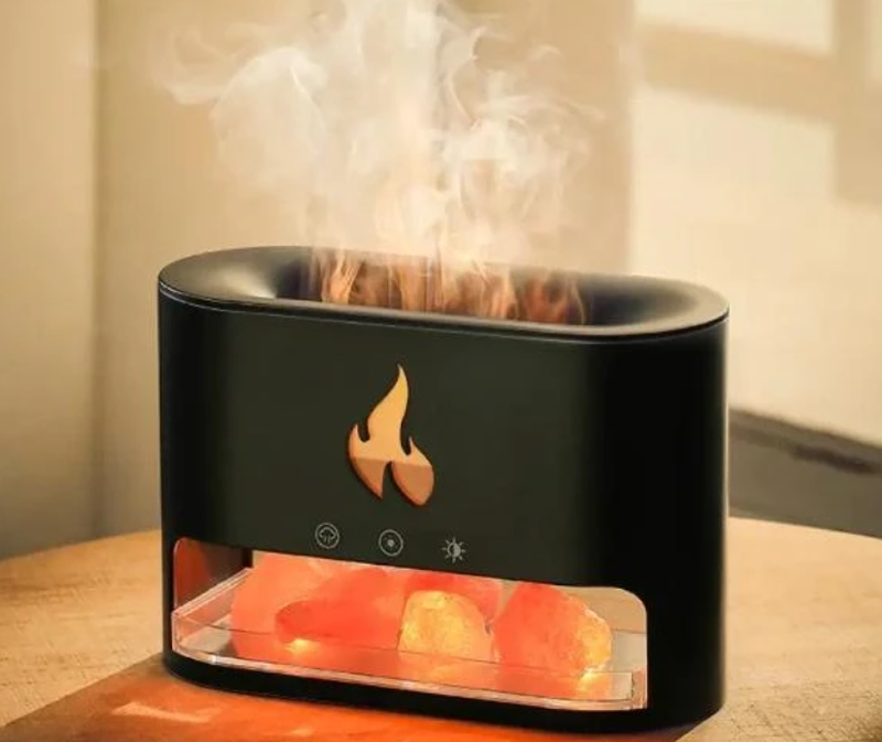 Увлажнитель воздуха docsal flame 3в1 с ультразвуковым увлажнением и соляными камнями. черн...