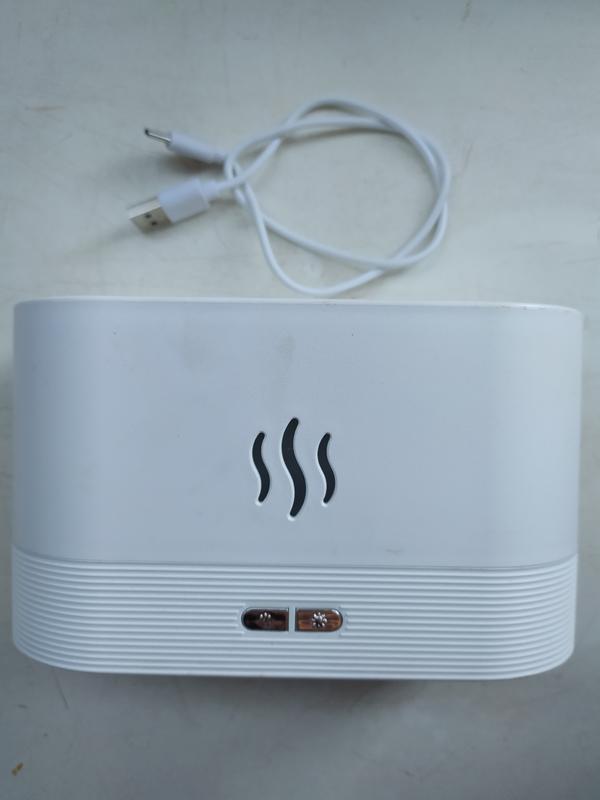 USB, розумний світлодіодний світильник із таймером, електричний дифузор для ароматерапії, зволожувач з імітацією полум'я вогню Матеріал: ABS+PP+електронні компоненти колір: Білий чорний Розмір: Приблизно 159 * 79 * 107 мм Вага: майже 375 г Робочий струм: ≤900мА Номінальна потужність: ≤4,5 Вт Час вимкнення: 1H 3H 5H синхронізоване вимкнення Місткість: 250 мл Номінальне напруга: DC 5V Об'єм розпилення: 30-40 млн год Джерело живлення: USB Характеристики: імітація ефекту освітлення полум'я; полум'яна лампа + синя полум'яна лампа. Інструкції з експлуатації продукту: 1. Функція ароматерапії: додати воду в резервуар для води не може перевищувати лінію рівня води, додати відповідну кількість ефірної олії, що не входить до комплекту, коротке натискання кнопки перемикача розпилення, щоб почати розпилення ароматерапії; коротке натискання ще раз, щоб зупинити роботу розпилення. 2. Функція освітлення: Натисніть і утримуйте впродовж 2 секунд, щоб увімкнути червоний індикатор, натисніть і утримуйте впродовж 2 секунд, щоб увімкнути синє світло, і натисніть й утримуйте впродовж 2 секунд, щоб вимкнути світло. 3. Функція захисту: вбудований чип захисту від нестачі води, він автоматично перестане працювати після виявлення браку води. У комплект входить: 1 шт.×Сумник Кабель 1 шт.×USB новий, один раз користувалися на перевірку, продається через непотрібність.