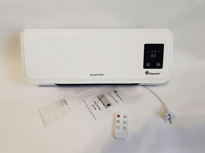 Тепловентилятор-дуйка з пультом керування Domotec MS 5962 Настінний обігрівач для дому Тепловентилятор DOMOTEC MS-5962 - це універсальний прилад, який ефективно обігріє приміщення і підтримає комфортну температуру. Він поєднує в собі стильний дизайн, компактні розміри та безліч корисних функцій, як-от швидке нагрівання, захист від перегріву та дистанційне керування. Пристрій підходить як для дому, так і для офісу, пропонуючи високу продуктивність і зручне використання. Його можна легко встановити на стіну, а інтуїтивне механічне управління забезпечує простоту експлуатації. Переваги: Швидке нагрівання завдяки керамічному нагрівальному елементу. Точне регулювання температури в діапазоні від 15 до 45 градусів. Два рівні потужності для налаштування режиму обігріву. Таймер для автоматичного вимкнення. Захист від перегріву для безпечного використання. Можливість використання в якості вентилятора влітку. Пульт дистанційного керування для зручності експлуатації. Енергоефективність: швидке нагрівання за низького енергоспоживання. Компактний і стильний дизайн, що підходить для будь-якого інтер'єру. Легкість встановлення на стіну та інтуїтивне механічне керування. Характеристики: Виробник: Domotec Призначення: Побутове Тип управління: Механічне Тип установки: Настінний Колір корпусу: Білий Стан: Новий Максимальна температура нагріву: 45°С Напруга мережі: 220-240 В Габарити: Ширина: 545 мм Висота: 225 мм Глибина: 130 мм Додаткові функції: Дисплей Індикатор температури Кріплення на стіну Захист від перегріву Таймер