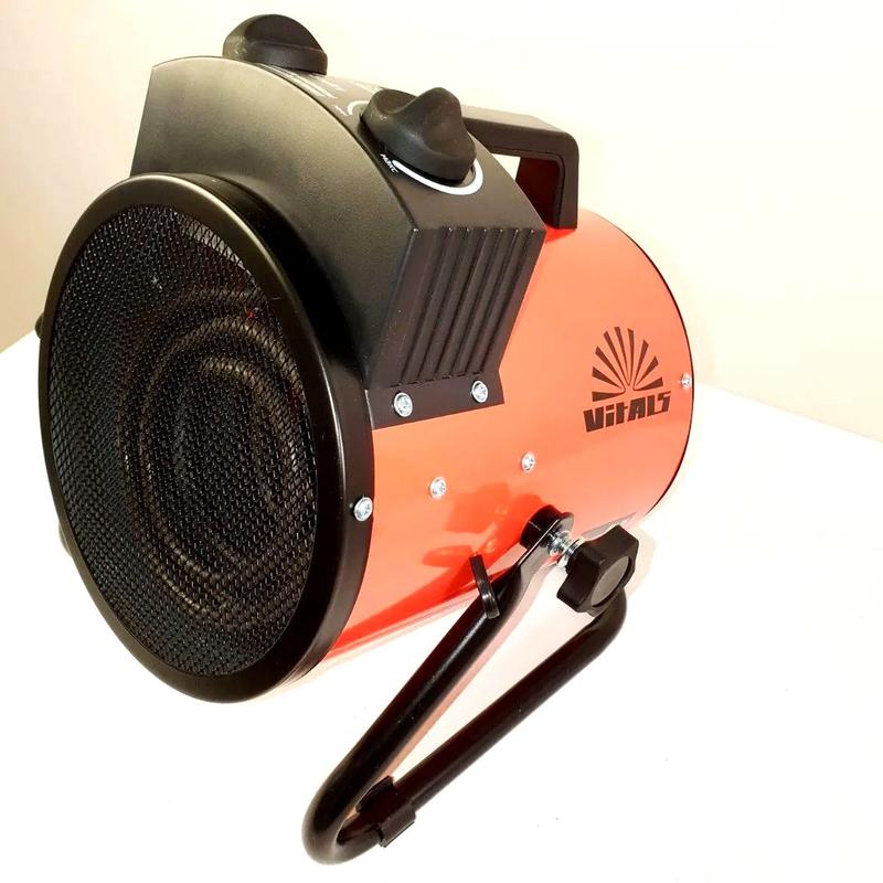 Тепловентилятор із керамічним нагрівачем, Тепловентилятор електричний керамічний (3 кВт/до 30 м2), NST Електричний тепловентилятор Vitals — мобільний опалювально-вентиляційний пристрій, призначений для тимчасового або постійного обігріву приміщень. Сфера використання електричного тепловентилятора Vitals EH-35 досить широка: обігрівання та вентиляція житлових, виробничих і допоміжних приміщень невеликого об'єму (квартири, дачі, будівельні об'єкти, теплиці, оранжереї, склади, гаражі, торгові павільйони); сушіння стін і стель під час виконання ремонтних робіт; сушіння білизни тощо. Ця модель, що має теплову потужність 3000 Вт, здатна обігріти приміщення (належним способом утеплене, з невеликими тепловими втратами та висотою стелі 3 м) площею до 30 м2. Водночас нагрівачем створюється потік повітря, рівний 286 м3/год. Принцип дії тепловентилятора простий — обігрівання приміщень відбувається завдяки інтенсивному нагнітанню й безперервному руху повітряного потоку через нагрівальний елемент, який створюється вбудованим електричним вентилятором. Для пожежної безпеки та запобігання виходу з ладу пристрою у разі досягнення критичного рівня його нагрівання, конструкцією передбачений захист від перегрівання. Для підтримки постійної температури в приміщенні використовується термостат. Електричний тепловентилятор Vitals має сучасний дизайн, надійний у роботі, простий в експлуатації й обслуговуванні. До комплекту постачання входить посібник з експлуатації, що повністю показує порядок експлуатації та технічного обслуговування пристрою. Особливості: - комплектуючі підвищеної зносостійкості; - корпус виробу виготовлений із металу високої якості; - надійні електричний двигун і нагрівальні елементи; - наявність термостата забезпечує підтримку постійної температури в приміщенні; - можливість регулювання за рівнем. 3 режими роботи: - вентиляція без обігріву повітряного потоку; - вентиляція з підігріванням повітряного потоку (50% потужності обігрівання); - вентиляція з підігріванням повітряного потоку (100% потужності обігріву).