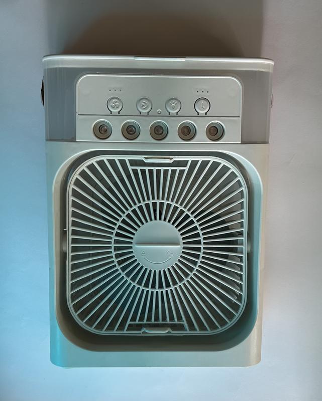 Звабливий у своїй компактності та функціональності, міні вентилятор з функцією зволоження повітря і підсвіткою, яку можна використовувати як нічник стане ідеальним вибором для вашого комфорту. Цей пристрій не лише освіжить повітря в приміщенні, але й забезпечить його зволоження, що особливо важливо в спекотні дні. Його можна легко підключити до повербанка, що гарантує неперервну роботу, навіть при відключенні світла. Матеріал: поліпропілен + електронні компоненти. Напруга: рекомендовано 5V/2А Потужність: 10W Роз’єм: Type-C. Шестерні розпилення вентилятора: тришвидкісний вентилятор/тришвидкісий розпил. Режим підсвітки: 7 різних кольорів на вибір. Комплект: вентилятор, коробка, інструкція з експлуатації + кабель для підключення до живлення в подарунок.