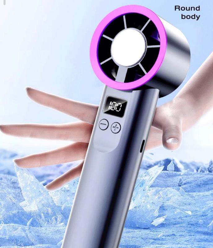 Ручний вентилятор з аккумулятором та дісплеєм, турбовентилятор 100 швидкостей type-c, сіро...