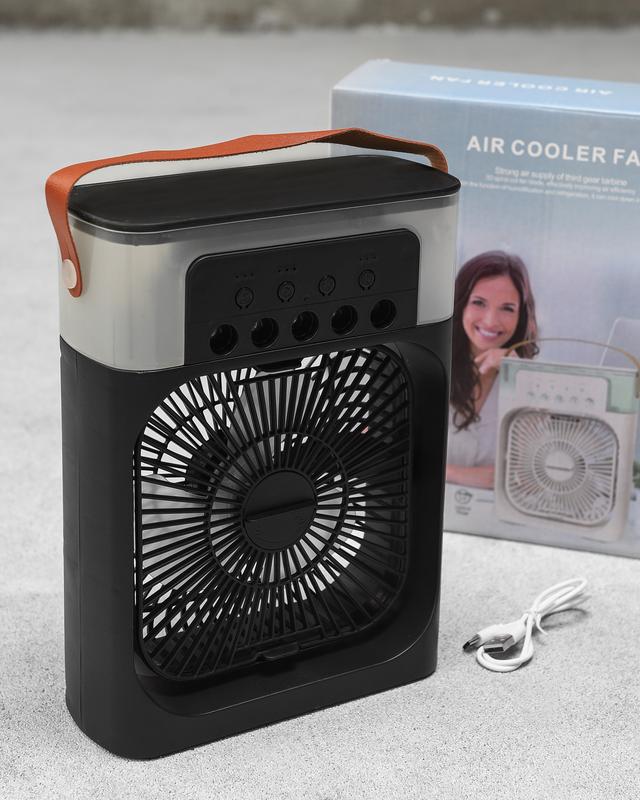 Міні вентилятор з функцією зволоження - необхідна побутова техніка для вентиляції квартири, дачі, автомобіля, офісного приміщення. Мобільний охолоджувач повітря допоможе налаштувати комфортну температуру у вашій кімнаті чи будинку. Є режим підсвічування-7 варіантів свічення. Пристрій має кут нахилу на всі 360 градусів-можна налаштувати точно під себе. Вентилятор з трьома регульованими швидкостями та трьома рівнями зволоження. Після заповнення пристрою водою може охолоджувати 12 годин на максимальній швидкості! Є режим підсвічування 7 варіантів свічення, можна налаштувати за настроєм або вимкнути зовсім.