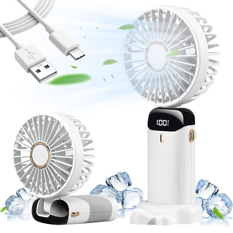 Ручний вентилятор з дисплеєм та підставкою, 5 швидкостей