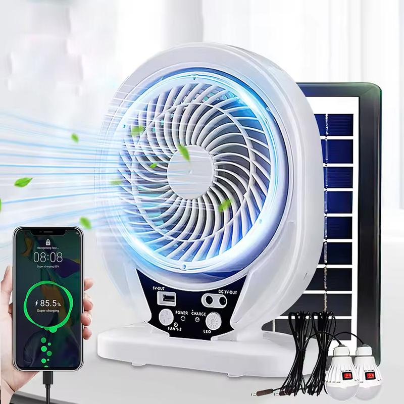 Портативний вентилятор із сонячною панеллю + 2 лампи, 4000маг, 6вт