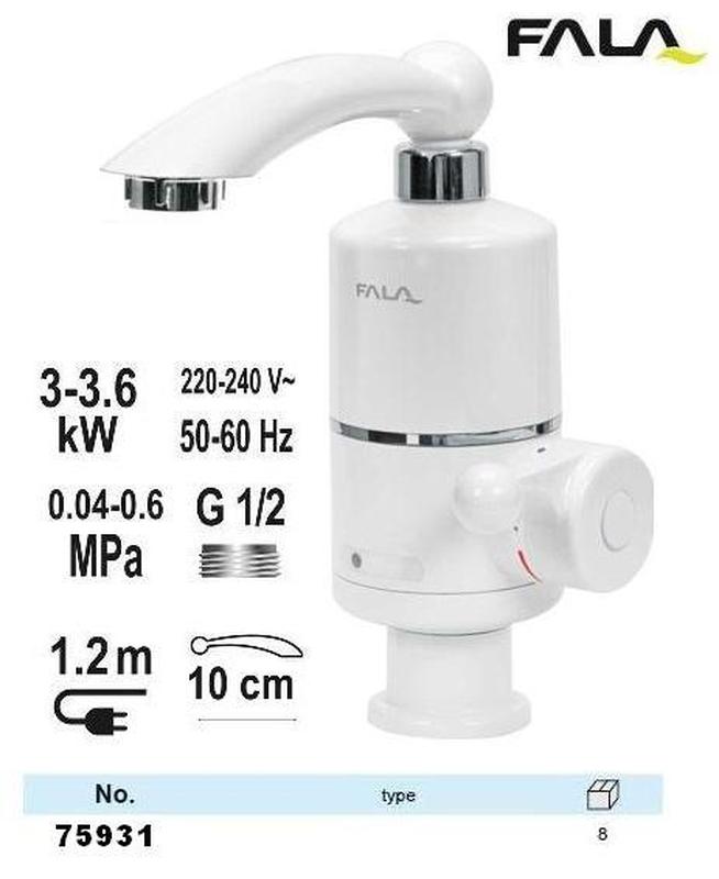Нагрівач проточної води мереж. fala до 60°с,3квт,тиск 0,04-0,6 mpa, гусак l=10 см, нижнє п...