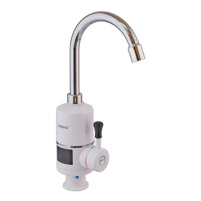 Опис - Виріб використовується для швидкого нагрівання проточної води в побутових цілях. - Під'єднується до магістралі холодного водопостачання за допомогою гнучкого шланга. - Висока якість використовуваних матеріалів забезпечує довговічність і надійність виробу. • Тип излива: поворотний • Тип виробу: кран водонагрівач • Тип керування: одноважільний ✅ Споживана потужність: 3.3 кВт • Кількість отворів для монтажу: 1 • Максимальна температура нагрівання води: 60 °C • Джерело живлення: мережа • Параметри електричної мережі: 2200 В, 50 Гц • Індикатор температури води: немає • Пристрій захисного вимкнення (ПЗВ): немає • Довжина кабелю: 1.2 м • 📌Шланги під'єднання: купуються окремо • Матеріал: пластик • Цвет: білий / хром • Поверхня: глянсова 📌ЗВЕРНІТЬ УВАГУ! Під'єднання крана до електричної мережі можна здійснювати тільки після його встановлення в робочому положенні й тільки після того, як він буде заповнений водою! Виробник залишає за собою право вносити зміни в конструкцію виробів і комплектацію, що не погіршують якість, без попереднього повідомлення. Характеристики Бренд ZERIX Серія ELW41 Матеріал пластик Колір білий Способ нагрева електричний Спосіб встановлення на мийку Потужність 3.3 кВт Ширина, мм 100 Висота, мм 340 Глибина, мм 200 Індикатор температури води немає Пристрій захисного вимкнення (ПЗВ) немає