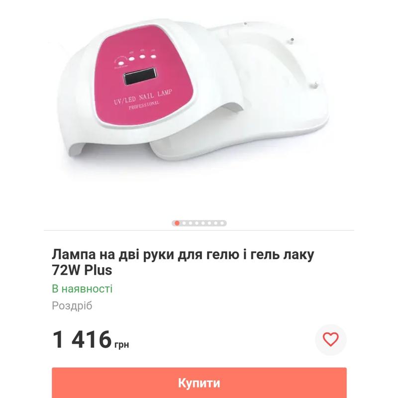 дуже крута лампа, купила, щоб робити собі манікюр, але походила на курси манікюру і так і не знайшла час, щоб робити собі вдома, бо дитина постійно хворіла, а тепер ми хочемо виїхати за кордон, тому продаю зайві речі, хоч і крута дуже потужна лампа, аж 72вата , з переляку купила собі професійну... Ще є витяжка за 1000 і світильник 200грн, купувала за 500 Пишіть відповім на всі питання
