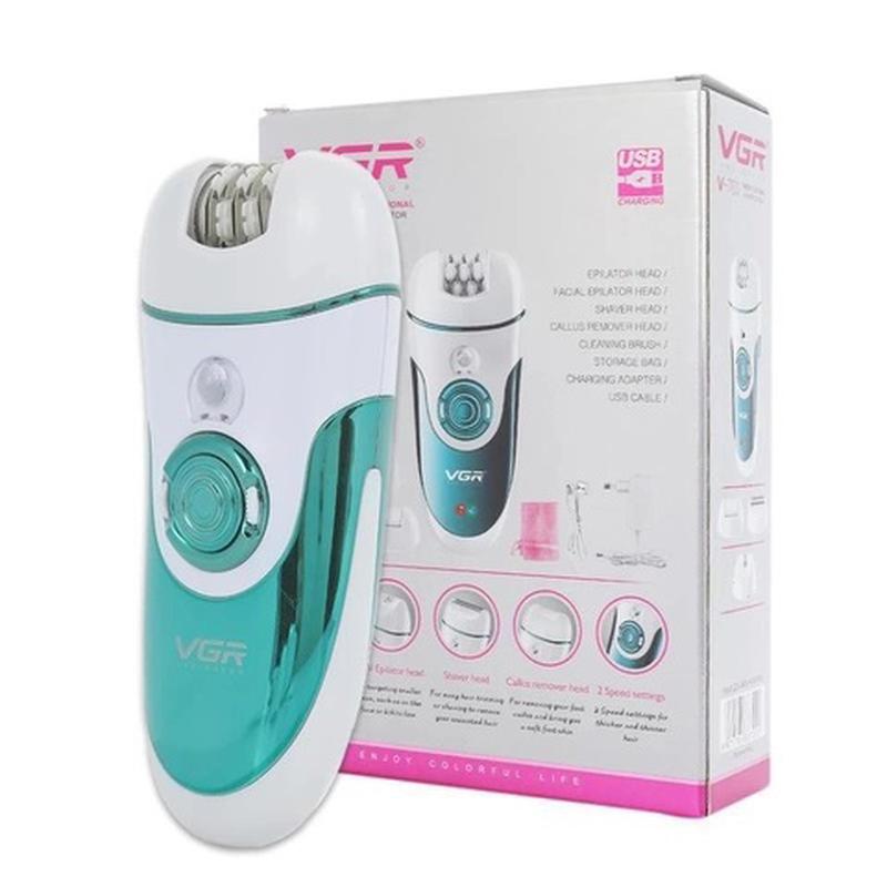 Епілятор VGR V-700 призначений для видалення небажаного волосся на тривалий період – до 4 тижнів! Цей епілятор максимально зручний у використанні, не вислизає з руки, кнопка перемикання режимів розташована так, щоб легко могли її прокручувати. Модель відрізняється ергономічним корпусом з гладкими лініями, підсвічуванням та двома швидкостями. Також має насадку для бритви, насадку-пемзу та вузьку насадку-епілятор. Характеристики: Фірма: VGR; Модель: V-700; Кількість насадок: 4; Матеріал корпусу: пластик; Потужність: 3 Вт; Живлення: від акумулятора; Тип елементів живлення: Ni-MH; Ємність акумулятора: 2×500 mAh; Час роботи від акумулятора: 50 хвилин; Час до повної зарядки акумулятора: 8 годин; Тип епілятора: пінцетний; Кількість швидкостей: 2; Підсвічування: так; Колір: бірюзовий; Тип епіляції: суха; Розмір: 13 х 5,8 х 2,5 см; Вага: 130 г. Комплектація: Епілятор VGR V-700; Широка насадка для епіляції; Насадка для бритви; Насадка-пемза; Вузька насадка для епіляції; Мережний адаптер для заряджання; USB-кабель для заряджання; Сумочка для зберігання; Невелика губка; Щітка для очищення; Інструкція (англійською мовою); Фірмова упаковка.