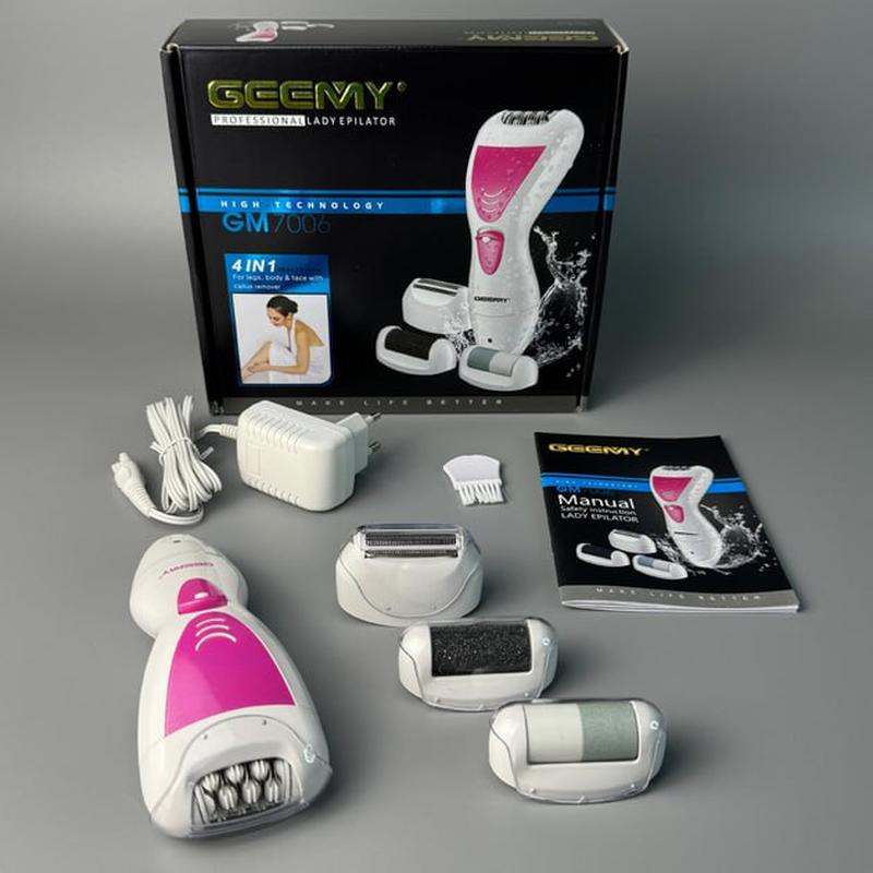 Эпилятор 4 в 1 Gemei GM 7006 – универсальный прибор для быстрого и безболезненного удаления волос на ногах, линии бикини и подмышках. Четыре сменные насадки позволяют эпиляцию, бритье, шлифование и филирование кожи. Характеристики: •Виробник: Gemei •Потяжность: 3 Вт •Напруга: 220–240 В •Частота: 50–60 Гц •Тип эпиляции: сухая и влага •Время работы от аккумулятора: 45 мин •Время зарядки: до 5 ч •Количество насадок: 4 шт. • Робочий режим: 1 •Защитные колпачки на насадках: есть Можно использовать направления от розетки! Комплектация -Основная насадка для эпиляции -Бритвеновая насадка -Насадка для шлифования (пемза) -Насадка для деликатного филирования -Блок питания -Щеточка для чистки - Инструкция