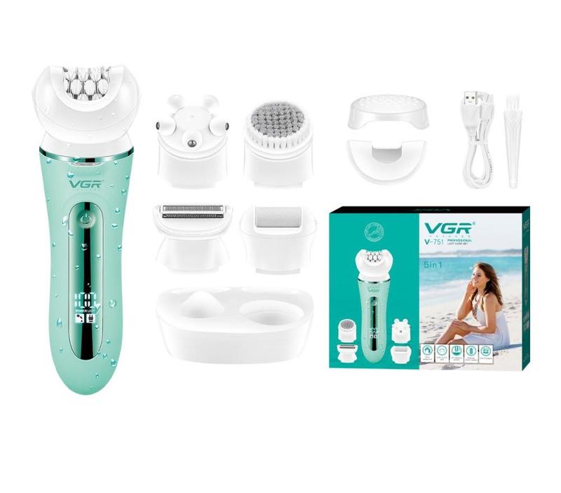 Эпилятор 5в1 VGR V-751 с 5 насадками - универсальный прибор для комплексного ухода за кожей, сочетающий пять функций в одном устройстве. Благодаря 5 сменным насадкам вы сможете проводить эпиляцию, бритье, отделку деликатных зон, мягкий пилинг или массаж. Уровень защиты IPX6 позволяет безопасно использовать устройство во влажных условиях и легко промывать его под проточной водой. Характеристики: - Питание: встроенный аккумулятор - Время работы: до 100 минут - Время зарядки: 2,5 часа - Защита от влаги: IPX6 - Дисплей: LED индикатор уровня заряда - Насадки: 5 сменных Комплектация: - Эпилятор 5в1 VGR V-751 - 5 сменных насадок - USB-кабель для зарядки - Щетка для чистки - Упаковка/ Инструкция *Внешний вид товара и комплектация могут отличаться от изображения на сайте и зависят от поставки