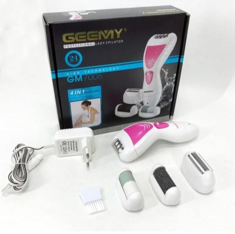 ЗАМЛЕНИЕ УКРПОНТАЮ ТОЛЬКО ИЗ-ОПЛАТОЮ на КАРТКЕ ПРОДАВЦА-! ЭПИЛЯТОР Geemy-7006 PROFESSIONAL 4IN1 идеально подходит для линии бикини, подмышек и ног. Элегантный дизайн разработан специально для удобного использования, насадки меняются просто и быстро. Эпилятор имеет 4 насадки: основная для качественной эпиляции, бритва с двойным лезвием и триммером для легкого сбрывания, насадка-пемза для избавления от мозолей, натоптышей, огрубех насадка для филирования. Такой эпилятор заменяет четыре отдельных устройства. Подходит для эпиляции в ванной или душе. Бритвенная насадка с двойными лезвиями из стали и защитной сеточкой позволит обработать самые нежные интимные зоны, без раздражения и болезненных ощущений. Насадка пемза мягко и быстро удаляет огрубевшую кожу, делая ступни абсолютно гладкими. вращающаяся роликовая головка действует бережно, не требуется распаривания кожи перед использованием. Эпилятор простой и удобный в эксплуатации, работает от встроенного аккумулятора. Отсутствие провода питания способствует комфорту и позволяет не привязываться к расположению розеток в помещении. Длительность непрерывного функционирования одной зарядки составляет 45 минут. Для подзарядки батареи в комплекте есть адаптер сети. Предусмотрена щеточка для очистки насадок. ОСОБЕННОСТИ ЭПИЛЯТОРА: Обеспечит быстрое и мягкое удаление нежелательных волос и на любом участке тела, делая кожу идеально гладкой Существует пониженный уровень вибрации Может использоваться на сухой коже без применения пены или специального геля Не вызывает аллергии и раздражения Не повреждает кожу Долговременный эффект удаления волос Имеет два рабочих режима, благодаря чему можно регулировать скорость вращения головок Бритвенная насадка с двойным лезвием и триммером для легкого сбрывания Большая эпилирующая головка (32 пинцеты) для удаления волос на ногах, руках 2 педикюрные насадки (большое шлифование и деликатное) для избавления от мозолей, натоптышей, огрубевшей кожи на ступнях Заряжается от сети 220 в КОМПЛЕКТАЦІЯ: 4 насадки в комплекті: Основная насадка для качественной эпиляции Бритвенна насадка Насадка для шлифовки Насадка для филирования деликатная Блок питания Щетка для чистки Инструкция