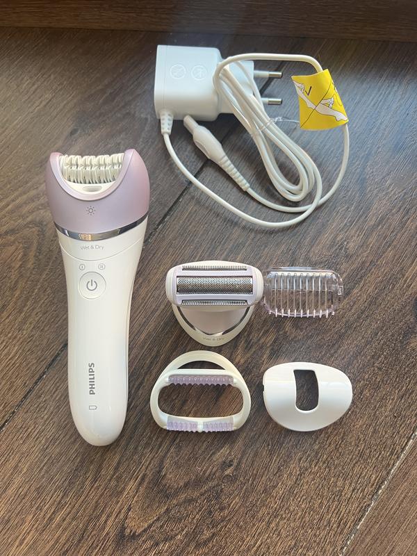 Епілятор PHILIPS BRE600 В комплекті: пильник, Насадки гребінцева; бриюча; Skin Stretcher для делікатних зон; Працює як від акумулятора, можна користуватися у ванній під водою, так і від мережі