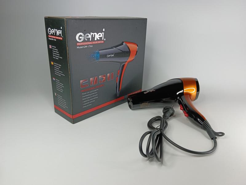 Фен для волос gemei gm-1766 2600 вт черно-оранжевого цвета