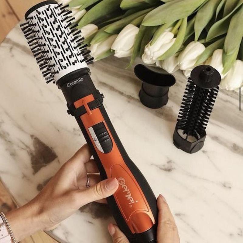 Стайлер — фен для волосся Gemei GM 4828, потужність 1000W, 3 насадки, фен побутовий, фен перукарський! Стайлер Gemei GM-4828 — це багатофункціональний прилад для краси Вашого волосся, він дасть змогу створювати різні чарівні образи щодня. GM-4828 — це фен із трьома різними насадками, за допомогою яких можна створювати безліч різновидів зачісок: кучері — дрібні та великі, об'єм, брашинг, будь-які складні укладки, все, на що вистачить фантазії. Стайлер дбайливо сушить волосся, не заподіює шкоди його структурі та, завдяки автоматично обертовим насадкам, забезпечує ефективну стійку укладку. Gemei GM-4828 підійде для будь-якого типу та довжини волосся і стане незамінним помічником для Вашої краси щодня. Характеристики: - Виробник: Gemei - Країна-виробник: Китай - Тип: Стайлери повітряні - Тип живлення: Мережа 220 В - Споживана потужність: 1000.0 (Вт) - Кількість насадок: 3 Комплектація - Стайлер для волосся Gemei GM-4828 - Насадки (3 шт.) - Коробка