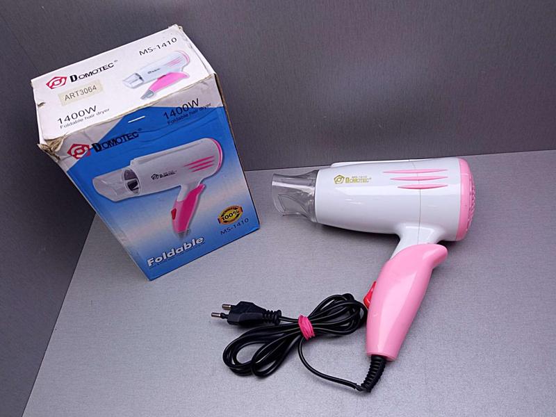 Дорожній фен для волосся Domotec 1400W MS-1410. Внимание! Комісійний товар. Уточнюйте наявність і комплектацію в менеджера. Товар може бути проданий у роздрібному магазині. Хочете знижку? Розгляньмо. Запропонуємо свою ціну й ми подивіться, що можемо зробити. Товар відпускається тільки за передоплатою. Сумма-передоплати залежить від розміру та ваги посилки, але не менш ніж 50 грн. Функціональний стан товару Ви можете уточнити в менеджера!