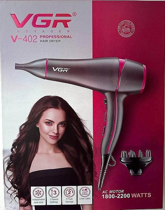 Фен для волосся vgr v-402 2200вт з 2 насадками і холодним обдувом