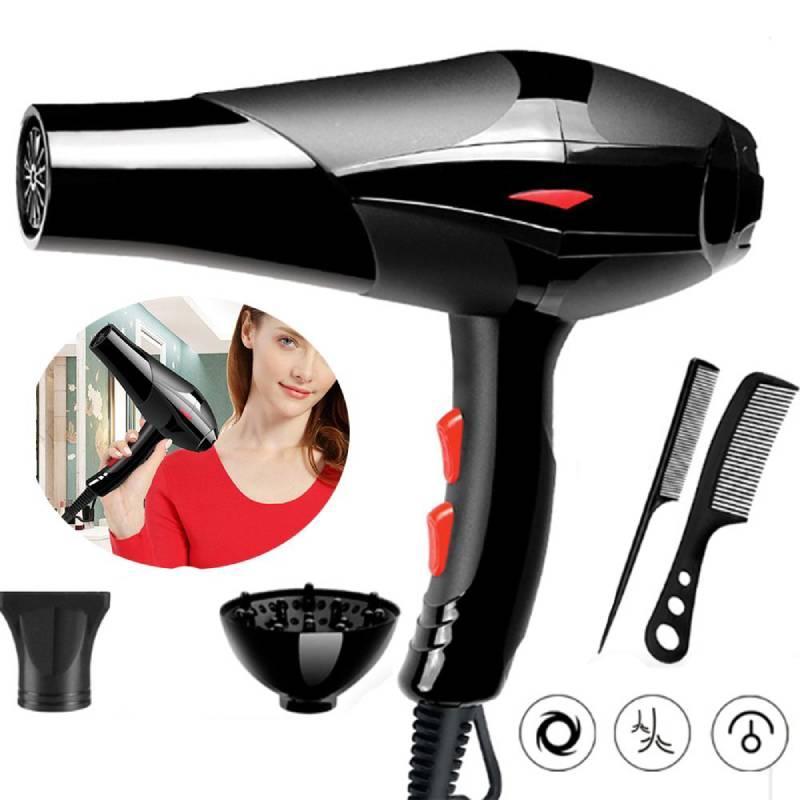 Конструкція фену для сушіння і укладки волосся Hair Dryer запобігає пошкодженню волосся під час сушіння та не пересушує волосся завдяки налаштувань температури обдуву. Прохолодне повітря зменшує кучерявість і може допомогти надати волоссю блиску та закріпити вашу зачіску. 2-метровий кабель забезпечує більше вільного руху. Знімний повітряний фільтр, який легко очищується, і зручна петля для підвішування додадуть комфорту у використанні фену. Щоб підтримувати максимальну продуктивність виробу та продовжити термін служби двигуна, важливо регулярно видаляти пил і бруд із задньої решітки та очищати її м’якою щіткою. Особливості використання. Перемикач можна відрегулювати на найвищий рівень, якщо ваше волосся дуже мокре. Якщо ваше волосся злегка вологе, краще відрегулювати перемикач на тепле повітря. Для досягнення найкращого ефекту відстань між феном і вашим волоссям має бути більше 10 см, не використовуйте фен в одному місці протягом тривалого часу, щоб уникнути пошкодження волосся.В комплекті фену передбачено дві насадки: концентратор для чіткого спрямування повітряного потоку для гладкої укладки та дифузор для створення об'ємної зачіски. Користуватись феном можна і без насадок. Також в комплекті є гребінець. Зручне керування з кнопок. На рукоятці знаходяться 2 кнопки: одна вмикає прилад і дозволяє встановити одну з двох швидкостей; інша кнопка регулює температуру повітря: прохолодне, тепле та гаряче. Температурні режими: Гаряче повітря: 57-59 градусів Тепле повітря: 44-46 градусів Прохолодне повітря: 24-46 градусів Дотримуйтесь техніки безпеки! Коли фен використовується у ванній кімнаті, виймайте вилку з розетки після використання. Не кладіть фен на вологу поверхню або тканину, коли він працює. Не закривайте впускний або випускний отвір для повітря. Під час першого використання може з'явитись незначний димний запах, але це не означає, що продукт пошкоджений. Характеристики: Тип: професійний фен для волосся Тип волосся : усі типи волосся Колір: чорний Номінальна потужність: 3000 Вт Напруга мережі: 220-240 В Довжина кабелю: 2 м