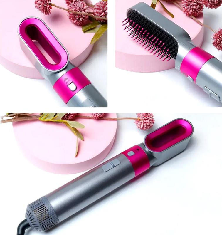 Фен-щетка для укладки коротких волос, Мультифункциональный фен для создания разных причесок 5в1, NST Стайлер 5 в 1 для разных типов волос с функциями придания объема, выпрямления, укладки замечательный прибор для укладки волос, с помощью которого вы сможете делать разнообразные прически и всегда выглядеть потрясающе. Особенности: - СУШКА. При помощи насадки-сушки Вы быстро высушите волосы перед укладкой. Её форма создаёт мощный воздушный поток, и Ваши волосы высохнут быстро. - ДЛЯ ВСЕХ ТИПОВ ВОЛОС. В комплект входят специальные щётки с мягкой и жёсткой щетиной для разного типа волос. Мягкая щётка идеальна для тонких волос, которым нужно особо бережное отношение. А жёсткая хороша для укладки вьющихся непокорных прядей. - ВЫПРЯМЛЕНИЕ И ЗАВИВКА. Используйте круглые насадки для завивки (30 мм), чтобы создать объёмные или небрежные, чуть растрёпанные локоны. Или вытяните волосы специальными щётками, чтобы получить стильную гладкую укладку. - БЕЗ ПЕРЕГРЕВА. Интеллектуальные датчики стайлера постоянно измеряют температуру и регулируют её, чтобы она не превышала 120С. Вашим волосам перегрев не грозит, но всё же рекомендуем не пренебрегать термозащитными средствами. Характеристики: - Материал: ABS пластик, поликарбонат - Источник питания: От сети 220 В - Максимальная мощность: 1000 Вт - Нагревательный элемент: инфракрасный - Количество насадок: 5 - Длина сетевого шнура: 200 см - Вращение: на 360 градусов