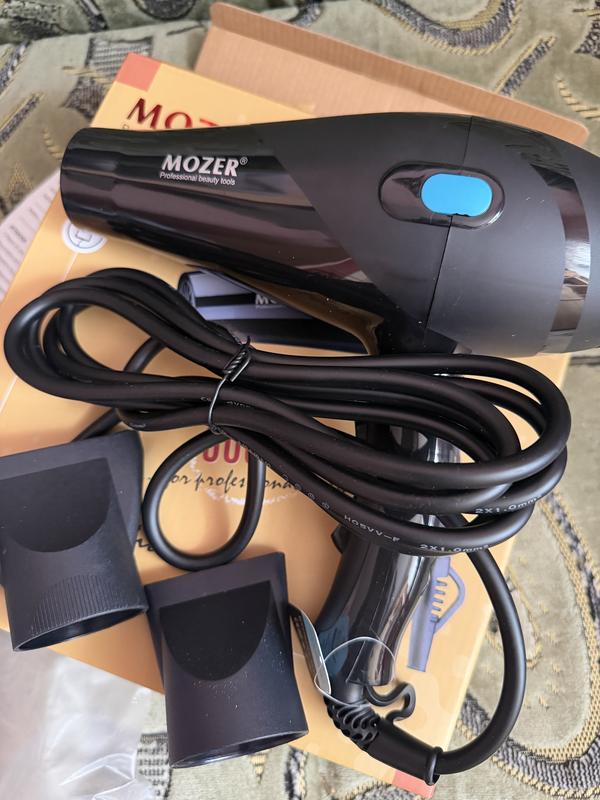 Професійний фен для волосся Mozer MZ 3100 6000 Вт. Дана модель має високу потужність — 6000 Вт, тому укладання з його допомогою повинна бути швидкою і легкою. Корпус фена зроблений з якісного термостійкого пластику, що гарантує тривалий термін служби інструменту. Максимальну зручність у використанні досягається завдяки найвищій ергономіці і збалансованому розподілу ваги. Зручна ручка, металевий фільтр, ідеальна форма і невеликий розмір корпусу. При цьому є можливість регулювання трьох температурних режимів і двох швидкостей повітряного потоку, що дозволяє підбирати необхідні режими роботи під кожну укладання і тип волосся. Фен таким чином піклується про них і не дає пересушити. Подача холодного повітря дозволить закріпити зачіску і зробити її більш стійкою. Петелька для підвішування створює додаткову зручність при використанні. Характеристики: Тип: Фен Тип живлення: Мережа 220 В Кількість насадок: 2 Кількість швидкостей: 2 Кількість температурних режимів: 3 Холодний обдув: Так Режим: Турбо Так Колір корпусу: Чорний Незалежне регулювання швидкості та температурного режиму: Так Концентратор: Так Захист від перегріву: Так Довжина мережевого шнура: 2.7 м Петелька для підвішування: Так Комплектація: Фен Насадка 2 шт Упаковка
