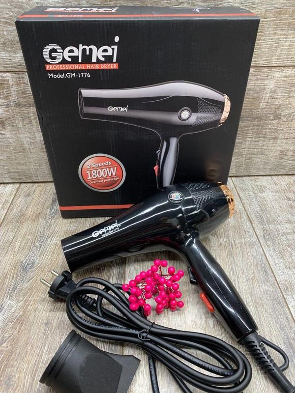 Функціональний і зручний фен GEMEI відрізняється високою якістю і надійністю, дбайливо сушить волосся. Це потужний і універсальний інструмент, за допомогою якого можна не тільки висушити, але і акуратно вкласти ваші волосся.Завдяки потужності в 1800Вт, виходить повітря нагрівається практично миттєво. Ви можете регулювати швидкість потоку повітря і температуру нагрівання. Відключення моделі при перегріві дозволить продовжити термін його служби і забезпечить його безпечну експлуатацію. Основні характеристики: Потужність: 1800 Вт Кількість температурних режимів: 2 Кількість режимів роботи: 2 Кількість швидкостей: 2; Кількість насадок: 1 Подача холодного повітря: так Зручність і безпека