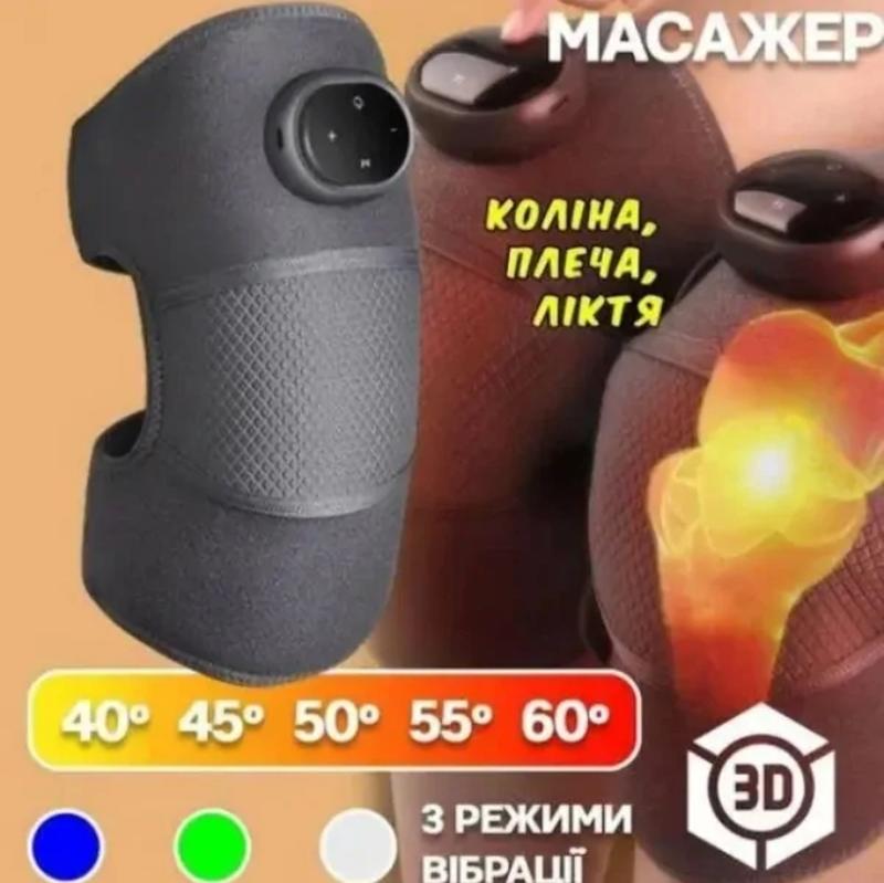 Вібраційний масажер бандаж на суглоби з підігрівом. Інфрачервоний вібраційний масажер полегшує біль у суглобах, жорсткість м'язів і набряк суглобів. Ергономічний дизайн для коліна, плечей і ліктя може бути зафіксований на будь-яких суглобах. Літій-іонна батарея забезпечує повну портативність, може забезпечити полегшення на ходу. Масажер підходять для людей із ревматоїдними хворобами, для спортсменів або тих, хто багато часу проводить на вулиці. Наколінники з підігрівом — чудовий подарунок рідним і близьким людям. Розігріває коліна до +50 градусів. Особливості Натисніть і утримуйте для перемикання температурного режиму 3 режими вібраціїнях надають розслаблювальну дію, завдяки чому шкіра та м'язова тканина відновлюються швидше. Ви можете використовувати три функції одночасно або окремо. Швидке нагрівання коліна. Коліно повністю закрито, і це збільшує площу нагрівання. Сенсорний екран Повітропроникна, еластична, зручна, зносостійка та приємна для тіла тканина. Характеристики Розмір: 33*18*3,5 см Температура: три режими до 50 °C. Номінальна напруга: 110-240 В Потужність: 12 Вт Вага нетто: 0,29 кг Функції: вібромасаж Живлення: акумулятор Комплектація: наколінники, USB-кабель є оплата при отриманні