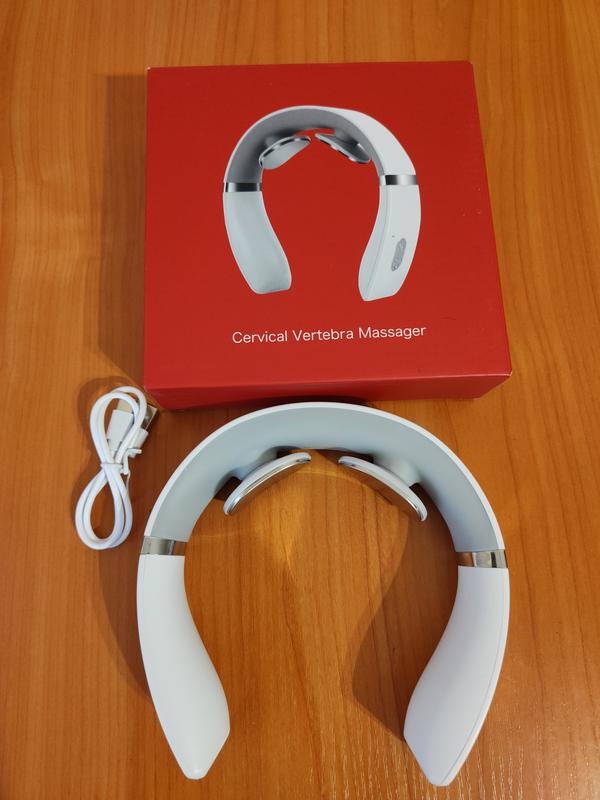 Масажер для шиї з міостимуляцією та підігрівом. Мікроструми сприяють активній роботі всієї м'язово-сполучної тканини в режимі скорочень і розслаблень, що благотворно позначається на роботі хребта в цілому, зменшує набряклість тканин і нормалізує кровообіг в області потилиці і шиї. Пристрій не є фізичним масажером, він не має рухомих елементів під час роботи і не робить фізичний масаж. Його принцип дії побудований на легких імпульсах, спрямованих на роботу з м'язами. Вбудований акумулятор забезпечує надійне та довгострокове живлення, а також дозволяє використовувати масажер у будь-якому місці без необхідності підключення до розетки. Масажер має різноманітні налаштування та режими, які можна налаштувати під свої уподобання та потреби. Протипоказання: Вагітність; Наявність кардіостимулятора; Підвищена чутливість; Рани, порізи; Сильні запальні процеси. Час роботи: 15 хв Методи масажу: 3 режима Інтенсивність масажу: 15 рівнів