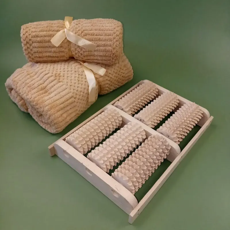 Масажер для стоп роликовий дерев'яний 6 шипованих роликів+подарунок