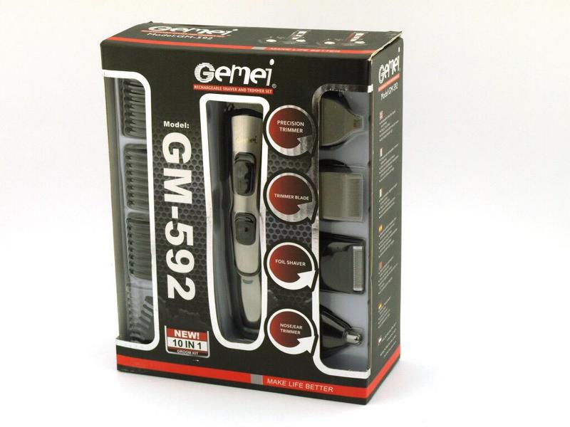 Машинка для стрижки волос і бритва триммер 10 в 1 GM-592 - це ідеальне рішення для тих, хто хоче тримати свою зачіску і бороду в відмінному стані. Цей набір пропонує всі необхідні інструменти для догляду за волоссям і бородою в одному зручному пристрої. Машинка для стрижки волос і бритва триммер GM-592 оснащена потужним двигуном, який забезпечує чистий і рівний стрижку без розтягування або розриву волосся. З різноманітними насадками, включаючи гребені різної довжини, ви зможете легко створювати різні зачіски і стилі волосся. Бритва триммер також включає додаткові насадки для точної обробки бороди, вусів і бакенбардів. Ви можете вибрати потрібну довжину стрижки або гоління, щоб отримати бажаний результат. Цей набір постачається з 24 штуками в упаковці, що робить його відмінним вибором як для професіоналів, так і для домашнього використання. Ви можете використовувати його для стрижки волосся, підравнювання бороди, видалення зайвого волосся на тілі і навіть для інтимної стрижки. Машинка для стрижки волос і бритва триммер GM-592 легка і компактна, що робить її зручною в використанні. Вона також має тривалий час роботи від одного заряду, що дозволяє вам використовувати її без перерв. Не відкладайте догляд за своїм зовнішнім виглядом на потім - придбайте машинку для стрижки волос і бритву триммер GM-592 вже сьогодні і насолоджуйтесь професійними результатами прямо у себе вдома!