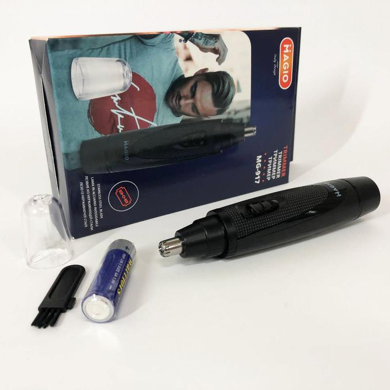 - Назначение: для носа и ушей - Вид: триммер - Питание: батарейки типа АА (1 шт) - Состригает волоски длиной от 1 мм - Функциональные особенности: сухая очистка - Материал лезвий: нержавеющая сталь Аксессуары: - Щеточка для чистки - Защитный колпачок Благодаря триммеру MG-917 вы совершенно безболезненно и безопасно сможете удалить волосы в носу и ушах. Триммер обтекаемой формы, имеет вращающуюся головку и узкий носик. Лезвие выполнено из нержавеющей стали. Это важная деталь любого триммера, от которой зависит как безопасность удаления волос из ушей и носа, так и комфорт. Триммер удобный, хорошо сидит в руке. Благодаря комфортной ручке он не скользит, что приводит вероятность травмирования практически к нулю. Работает прибор от одной пальчиковой батарейки. Если понадобится сменить батарейку, то это легко сделать, провернув корпус, и открыв его. Лезвие после использования можно чистить с помощью щеточки, которая идет в комплекте. Хорошо продумано, так как лезвие остается чистым. Прибор компактный и много места не занимает.