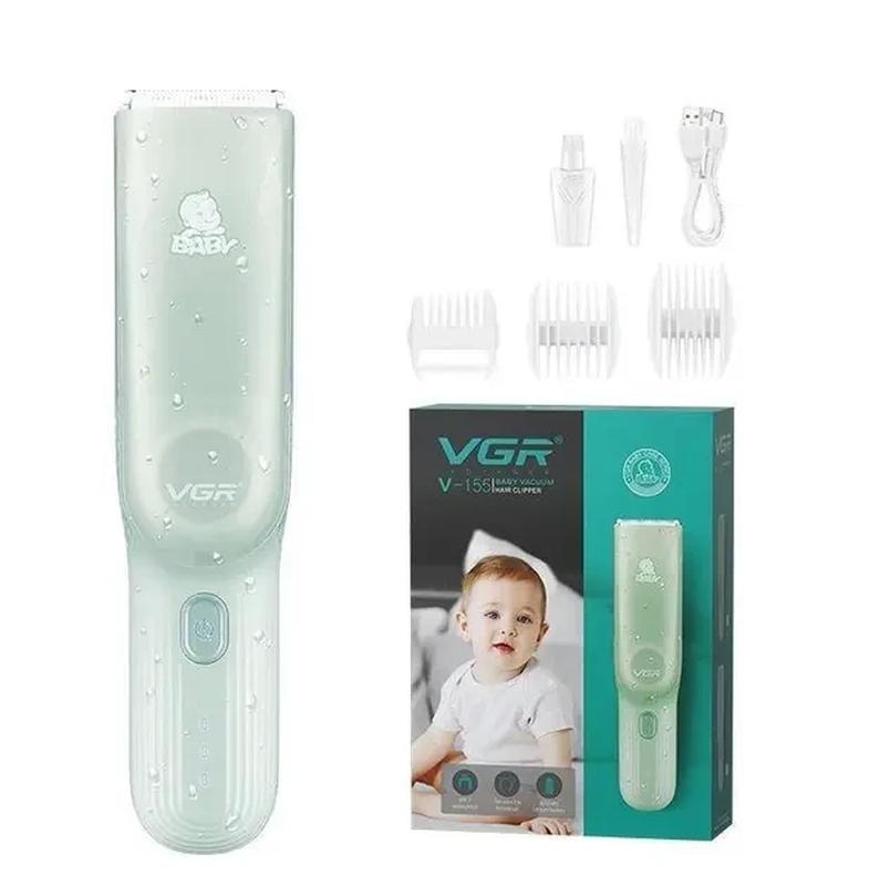 Машинка для стрижки детей бесшумная с вытяжкой vgr v-155, 4 безопасные насадки, ipx8, зеле...