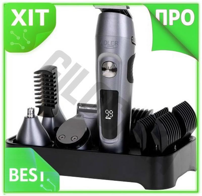 Ve набір для стрижки adler new version 6в1 з рк-дисплеєм для волосся бороди та тіла акумул...
