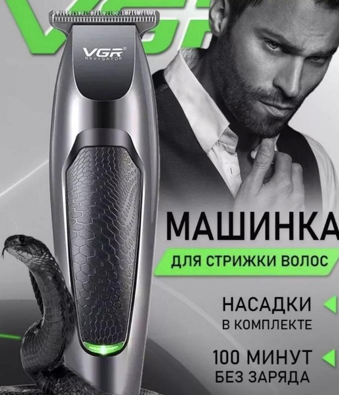 Электротриммер для бритья, Беспроводную машинку для стрижки, Триммер для гладкого бритья, NST Триммер VGR является незаменимым инструментом в работе мастеров моделирования стрижек. Он предназначен для профессионального использования в парикмахерских, салонах красоты, барбершопах и разрешен к применению в домашних условиях. Триммер VGR отличается прочным корпусом, устойчивым к воздействию вибрации, низким уровнем шума, стильным дизайном, плавным ходом острых лезвий, удобством и длительным сроком эксплуатации. Особенности: - Со сменными насадками возможно придать идеальную форму бороде и усам; - Оборудован лезвиями из нержавеющей стали, гарантирующими аккуратный ровный срез она аккуратно срезает волоски, не оставляя каких-либо следов на чувствительной коже; - Аккумулятор позволят триммеру работать автономно в течение 120 минут; - Он функционален и прост в управлении; - Прочный корпус, устойчивый к воздействию вибрации, низкий уровень шума. Ход - очень плаваний; - Стильный дизайн; - Удобно ложится в руке и имеет лёгкий вес; - Подходит как для детей, так и для взрослых; - Идеальный помощник в командировках. Характеристики: - Тип: Триммер для бороды и усов; - Тип питания: Аккумулятор; - Мощность: 5 Вт; - Аккумулятор: 600 mAh; - Время до полной зарядки аккумулятора: 120 минут; - Время работы от аккумулятора: 120 минут; - Материал лезвий: нержавеющая сталь; - Регулировка длины: сменные насадки; - Количество сменных насадок: 5 штук (1 мм, 2 мм, 3 мм, 4 мм, 5 мм); - Размер триммера: 15 х 4,5 х 3,5 см; - Вес: 131 грамм. Комплектация: - Триммер - 5 насадок (1 мм, 2 мм, 3 мм, 4 мм, 5 мм); - Защитная колпачок на лезвия; - Масло для смазки ножей; - Щетка для очистки триммера; - USB кабель для зарядки (есть возможность заряжать в автомобиле или от Power Bank); - Инструкция (на английском языке); - Фирменная заводская коробка.