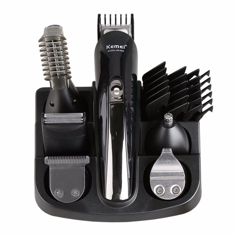 Електро машинку для стриження волосся, Електричну машинку для стриження волосся (111 в 1), NST Характеристики - Призначення: Борода, Вуса, Нос, Вуха, Тіло, Обличчя; - Потужність: 5 W; - Тип живлення: Акумулятор; - Тип акумулятора: NiMH; - Корпус: пластиковий; - Леза: нержавіюча сталь; - Насадки: 11 шт.; - Мінімальна довжина стриження: 1 мм; - Максимальна довжина стриження: 12 мм; - Інтервал довжини: 1 мм; - Можливість промивання ножів під водою: Так; - Самозаточувальні леза: Так; - Час безперервної роботи: 80 хвилин; - Час заряджання: 2 години; - Довжина мережевого шнура: 1 м; - Колір: Чорний. Комплектація 1. Тример 2. 11 насадок 3. Олія для змащення; 4. Гребінець; 5. Підставка; 6. Блок для заряджання приладу.
