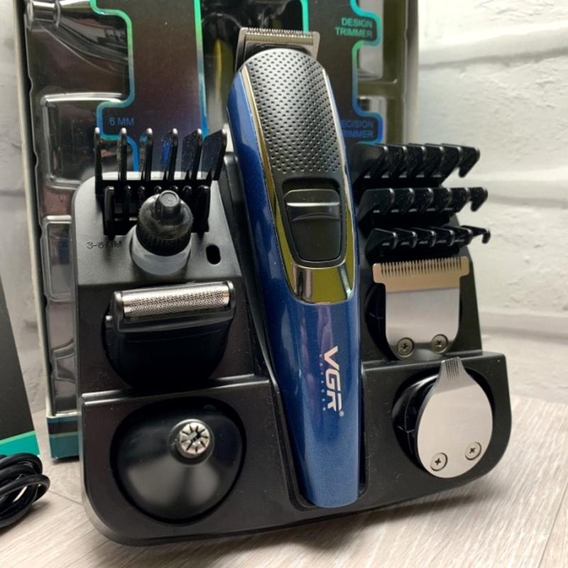 Тример чоловічий універсальний професійний тример для бороди без дроту (5в1), NST Машинка для стриження VGR з високою продуктивністю. має чудову міцну конструкцію з ергономічною ручкою. Представлена машинка для стриження волосся дуже проста у використанні, у комплекті є всі необхідні насадки для Вашого ідеального стриження. Як джерело живлення використовується акумулятор. Зручність акумулятора полягає в тому, що немає дротів, але водночас є ризик, що він може "сидіти" в невідповідний момент. Час заряджання машинки становить 2 години, автономно працює може впродовж 120 хвилин. Прилад має надійні леза з неіржавкої сталі. Корпус має привабливий вигляд і зручно розміщується в руці. Серед додаткових аксесуарів — підставка, щітка, олія та шнур для заряджання. укомплектована змінними насадками: бритвяна, для носа та вух, для регулювання довжини. Переваги: - Величезний плюс: заряджається від micro USB ( можна зарядити навіть від повербанка в будь-якому місці в будь-який час). - У комплекті є всі насадки, які придумані. - Універсальна машинка для бороди, волосся, носа, вух, тіла. - Машинки довго тримають заряд. Берет будь-яке волосся. Ця модель містить 10 насадок різного типу: - Насадки для стриження (3 мм, 6 мм, 9 мм, 12 мм) - Вузький тример для малюнків - Тример для носа та вух - Тример для бороди - Тример для тіла - Бритва Характеристики: - Тип: Машинка для стрижки - Дитяча/тиха стрижка: Так - Тип живлення: Акумулятор - Регулювання довжини: Змінні насадки - Матеріал: ABS - Ножева головка з неіржавкої сталі - Потужний LI-ION акумулятор. - Працює як із під'єднанням до мережі, так і без - Час заряджання: 2 год - Використання: 120 хвилин - Напруга: 100-240 В / 50-60 Гц - Потужність: 5 Вт - Індикатор заряду - Водонепроникний - Насадки: 3,6,9,12 мм - Шнур: 2,5 м - Розмір: 16,5 * 4 * 3,5 см Комплектація - Машинка - Гребневі насадки 5 шт. - Вузький тример - Тример для носа - Дизайнерський тример - Насадка для стриження волосся - Головка для гоління - База - USB-кабель - Щітка для очищення - Олія