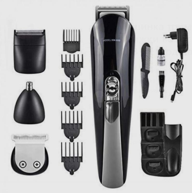 Профессиональный триммер для стрижки волос электрический (11в1), NST Характеристики - Назначение: Борода, Усы, Нос, Уши, Тело, Лицо; - Мощность: 5 W; - Тип питания: Аккумулятор; - Тип аккумулятора: NiMH; - Корпус: пластиковый; - Лезвия: нержавеющая сталь; - Насадки: 11 шт.; - Минимальная длина стрижки: 1 мм.; - Максимальная длина стрижки: 12 мм.; - Интервал длины: 1 мм.; - Возможность промывки ножей под водой: Да; - Самозатачивающиеся лезвия: Да; - Время непрерывной работы: 80 минут; - Время зарядки: 2 часа; - Длина сетевого шнура: 1 м.; - Цвет: Черный. Комплектация: 1. Триммер 2. 11 насадок 3. Масло для смазки; 4. Расческа; 5. Подставка; 6. Блок для зарядки прибора.