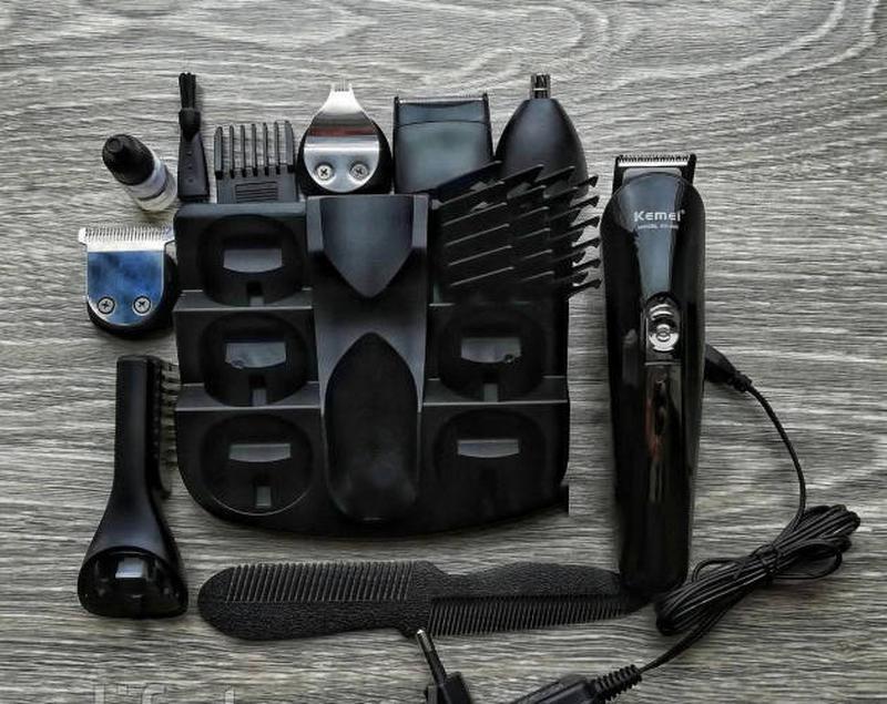 Тример акумуляторний для бороди голови та тіла (111 в 1), NST Характеристики - Призначення: Борода, Вуса, Нос, Вуха, Тіло, Обличчя; - Потужність: 5 W; - Тип живлення: Акумулятор; - Тип акумулятора: NiMH; - Корпус: пластиковий; - Леза: нержавіюча сталь; - Насадки: 11 шт.; - Мінімальна довжина стриження: 1 мм; - Максимальна довжина стриження: 12 мм; - Інтервал довжини: 1 мм; - Можливість промивання ножів під водою: Так; - Самозаточувальні леза: Так; - Час безперервної роботи: 80 хвилин; - Час заряджання: 2 години; - Довжина мережевого шнура: 1 м; - Колір: Чорний. Комплектація 1. Тример 2. 11 насадок 3. Олія для змащення; 4. Гребінець; 5. Підставка; 6. Блок для заряджання приладу.