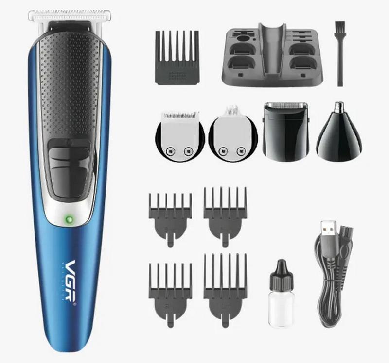 Машинка для стриження бороди потужна, Бездротова електромашинка для стриження волосся (5в1), NST Машинка для стриження VGR з високою продуктивністю. має чудову міцну конструкцію з ергономічною ручкою. Представлена машинка для стриження волосся дуже проста у використанні, у комплекті є всі необхідні насадки для Вашого ідеального стриження. Як джерело живлення використовується акумулятор. Зручність акумулятора полягає в тому, що немає дротів, але водночас є ризик, що він може "сидіти" в невідповідний момент. Час заряджання машинки становить 2 години, автономно працює може впродовж 120 хвилин. Прилад має надійні леза з неіржавкої сталі. Корпус має привабливий вигляд і зручно розміщується в руці. Серед додаткових аксесуарів — підставка, щітка, олива та шнур для заряджання. укомплектована змінними насадками: бритвяна, для носа та вух, для регулювання довжини. Переваги: - Величезний плюс: заряджається від micro USB ( можна зарядити навіть від повер банка в будь-якому місці в будь-який час). - У комплекті є всі насадки, які придумані. - Універсальна машинка для бороди, волосся, носа, вух, тіла. - Машинки довго тримають заряд. Берет будь-яке волосся. Ця модель містить 10 насадок різного типу: - Насадки для стриження (3 мм, 6 мм, 9 мм, 12 мм) - Вузький тример для малюнків - Тример для носа та вух - Тример для бороди - Тример для тіла - Бритва Характеристики: - Тип: Машинка для стрижки - Дитяча/тиха стрижка: Так - Тип живлення: Акумулятор - Регулювання довжини: Змінні насадки - Матеріал: ABS - Ножева головка з неіржавкої сталі - Потужний LI-ION акумулятор. - Працює як із під'єднанням до мережі, так і без - Час заряджання: 2 год - Використання: 120 хвилин - Напруга: 100-240 В / 50-60 Гц - Потужність: 5 Вт - Індикатор заряду - Водонепроникний - Насадки: 3,6,9,12 мм - Шнур: 2,5 м - Розмір: 16,5 * 4 * 3,5 см Комплектація - Машинка - Гребневі насадки 5 шт. - Вузький тример - Тример для носа - Дизайнерський тример - Насадка для стриження волосся - Головка для гоління - База - USB-кабель - Щітка для очищення - Олія