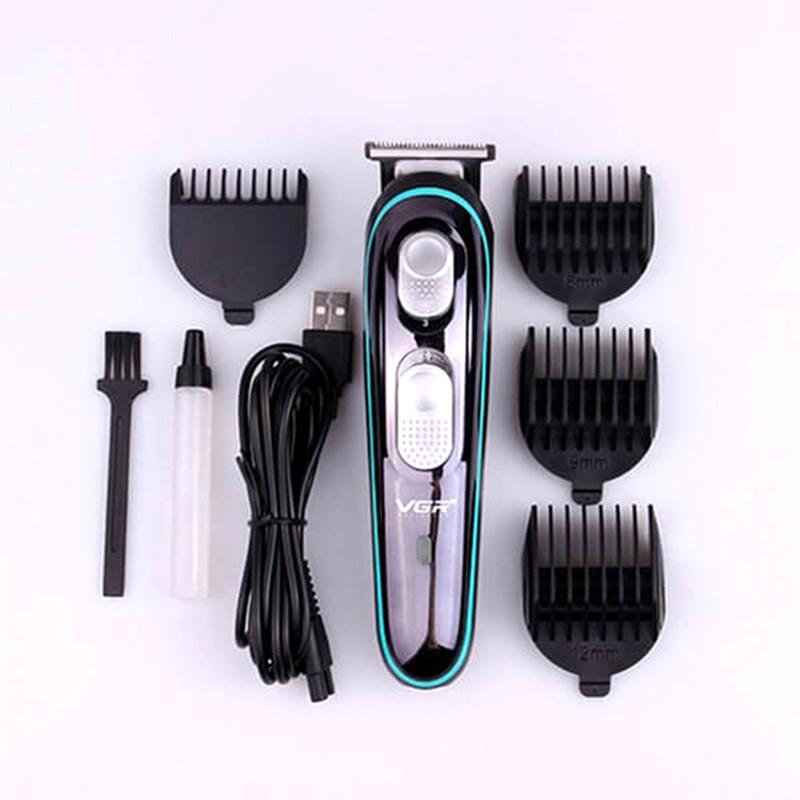 Тример для видалення волосся з носа, Машинки для стриження волосся й бороди, NST Тример VGR є незамінним інструментом у роботі майстрів моделювання стрижок. Він призначений для професійного використання в перукарнях, салонах краси, барбершопах і дозволений до застосування в домашніх умовах. Тример VGR вирізняється міцним корпусом, стійким до впливу вібрації, низьким рівнем шуму, стильним дизайном, плавним ходом гострих лез, зручністю і тривалим терміном експлуатації. Особливості: - Зі змінними насадками можна надати ідеальної форми бороді та вусам; - Обладнаний лезами з неіржавкої сталі, що гарантують акуратний рівний зріз вона акуратно зрізає волосинки, не залишаючи будь-яких слідів на чутливій шкірі; - Акумулятор дадуть змогу тримеру працювати автономно впродовж 120 хвилин; - Він функционален и прост в керуванні; - Має міцний корпус, стійкий до впливу вібрації, низький рівень шуму. Хід — дуже плаваний; - Має стильний дизайн; - Зручно лягає в руці та має легку вагу; - Підходить як для дітей, так і для дорослих; - Ідеальний помічник у відрядженнях. Характеристики: - Тип живлення: Акумулятор; - Тип акумулятора: Li-ion; - Потужність: 5 Вт; - Акумулятор: 1000 mAh; - Час заряджання: 1,5 години; - Час роботи від акумулятора: приблизно 120 хвилин; - Матеріал лез: нержавіюча сталь; - Регулювання довжини: змінні насадки; - Кнопка регулювання довжини зрізу; - Кількість змінних насадок: 4 штуки (3 мм, 6 мм, 9 мм, 12 мм); - Розміри тримера: 16 х 4,1 х 4,5 см; - Вага: 124,5 гр. Комплектація - Тример VGR; - 4 насадки (3 мм, 6 мм, 9 мм, 12 мм); - Олія для змащення ножів; - Щітка для очищення тримера; - USB кабель для заряджання (є можливість заряджати в автомобілі); - Інструкція (англійською мовою); - Фірмова подарункова коробка.