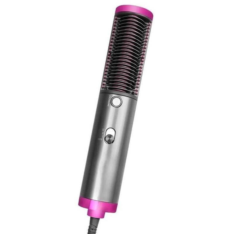 Ергономічна ручка та поворотний шнур на 360° призначені для зручності використання під час укладання. Захищає волосся від пересихання, рівномірно розподіляє температуру, що дозволяє іонам проникати глибоко в кутикулу волосся. Технологія негативної іонізації захищає волосся і бореться з електризацією, а також робить його більш гладким. Налаштування контролю температури однією кнопкою дозволить зручно регулювати температуру. Це фен і стайлер 3 в 1 – революційний інструмент, який замінює фен, гребінець та праску. Характеристики: Напруга: 220-240 В, 50/60 Гц. Потужність: 800 Вт. Унікальні вентиляційні отвори для швидкого висихання та кращого випрямлення. Вбудований термостат та запобіжник, подвійний захист від перегріву; Ергономічна ручка, проста у використанні. Поворотний шнур 1.5 м із оборотом на 360 градусів.
