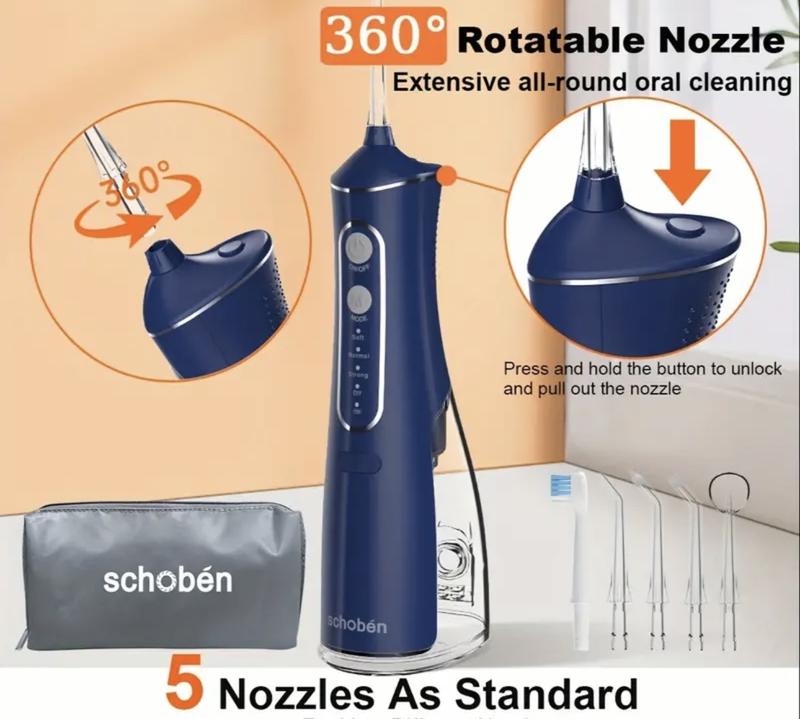 Портативний водний флосер для зубів забезпечує глибоке очищення зубів і ясен, що перевершує стандартне чищення зубною щіткою. За допомогою високонапірних водних імпульсів (1400-1800 раз/хв) пристрій видаляє до 99,99% залишків їжі та нальоту, які можуть накопичуватися в глибоких тріщинах і яснах. Ця технологія не тільки ефективно очищає, а й масажує ясна, сприяючи покращенню кровообігу та зміцненню тканин. Флосер оснащений трьома режимами роботи: Нормальний, М'який та Пульсаційний, що дозволяє задовольнити різні потреби у догляді за ротовою порожниною, включаючи чутливі зуби та ясна. Вбудований акумулятор ємністю 1500 мАг заряджається через USB за 3-4 години та забезпечує до 70 днів використання за звичайних умов. Ви можете заряджати пристрій від адаптера живлення, комп'ютера, зарядного пристрою для автомобіля або зовнішнього акумулятора. Пристрій має водонепроникний корпус IPX7, що забезпечує безпеку при використанні та легкість у догляді. Знімний водний резервуар об'ємом 300 мл дозволяє проводити безперервне чищення до 120 секунд, а конструкція полегшує очищення самого резервуара. Флосер поставляється з 5 насадками та чохлом для їх зберігання, що робить його ідеальним вибором для всієї родини. Цей флоссер є елегантним і компактним рішенням для тих, хто шукає ефективний і зручний спосіб догляду за порожниною рота. Його універсальні функції підходять для різних потреб у гігієні порожнини рота, забезпечуючи комплексний догляд за зубами та яснами.