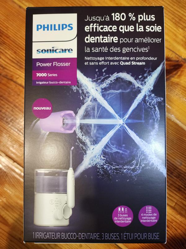 Philips Ирригатор Sonicare Power Flosser 7000 HX3911/40 С Philips Sonicare Power Flosser 7000 вы сможете ухаживать за своими зубами и десной на профессиональном уровне. Эта новая система ирригации полости рта имеет уникальные характеристики, которые гарантируют эффективную и комфортную очистку межзубных промежутков и поддержание здоровья десен. С помощью нежных водяных импульсов вы сможете легко и быстро избавиться от налета и пищевых остатков, а также массировать и укреплять десну. Преимущества товара: - 4 режима чистки межзубных промежутков, 10 уровней интенсивности. Вы сами выбираете оптимальный режим и силу давления воды в зависимости от ваших потребностей и предпочтений. Светодиодный дисплей показывает текущие настройки и время работы. - насадка F3 Quad Stream для максимального покрытия. Эта насадка создает четыре широких потока воды, охватывающих большую площадь между зубами и вдоль линии десен. Насадка изготовлена из мягкой резины, которая не травмирует десну. Насадка просто снимается и устанавливается на ручку. - Насадка F1 Standard для регулярной чистки. Эта насадка подходит для ежедневной интенсивной чистки межзубных промежутков и удаления налета и остатков пищи. - простая магнитная док-станция с автоматическим отключением. После использования вам достаточно поставить ручку на док-станцию, и она автоматически перейдет в режим отключения. Док-станция также служит зарядным устройством для ручки. – резервуар емкостью 600 мл, который легко наполнять. Резервуар обладает удобной крышкой, которая легко открывается и закрывается. Резервуар содержит достаточное количество воды для одной процедуры чистки. Для добавления воды вам не нужно снимать резервуар с базы, достаточно просто снять крышку и налить воду. - компактный футляр для насадок. В этом футляре можно хранить дополнительные насадки в гигиенических условиях. Футляр имеет стильный дизайн и занимает мало места. Характеристики: - Тип ирригатор: по возрасту взрослый, по назначению отбеливание и полировка, массаж десен - количество насадок: 3 - жесткость щетины: средней жесткости (medium) - режим давления: 10 режимов - резервуар для воды: 600 мл - Функционал: дополнительно 4 режима, технология чистки пульсирующая - физические характеристики: время зарядки 24 часа, питание аккумулятор, цвет белый, вес 0.89 кг, вес 0.89 кг - дополнительно: комплектация насадка F1 Standard /2 шт, насадка F3 Quad Stream /2 шт, беспроводной Power Flosser, футляр для хранения насадок, гарантия 24 месяца